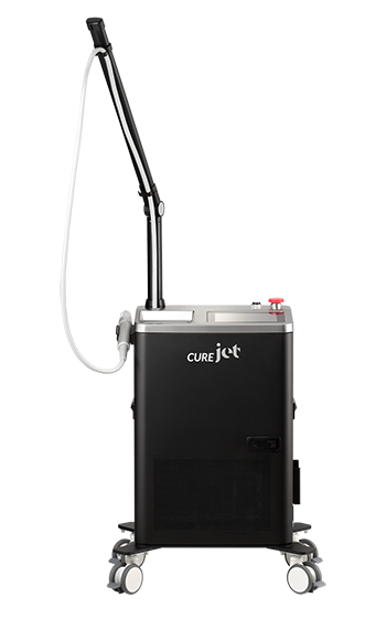 CUREjet を使用したマイクロサブシジョン治療は、針ではなくジェットの圧力の力によって表皮基底層~真皮乳頭層~真皮深層にかけて存在する線維化した組織を、低侵襲且つ均一に切断することが可能で、ダウンタイムも比較的短い治療です。