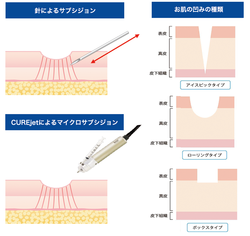お肌の凹みを改善する CUREjet のマイクロサブシジョン