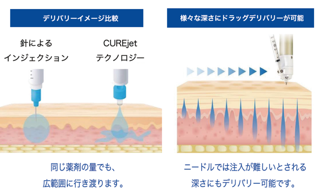 CUREjet はジェットの圧力の力でドラッグデリバリーを行うことが可能です。