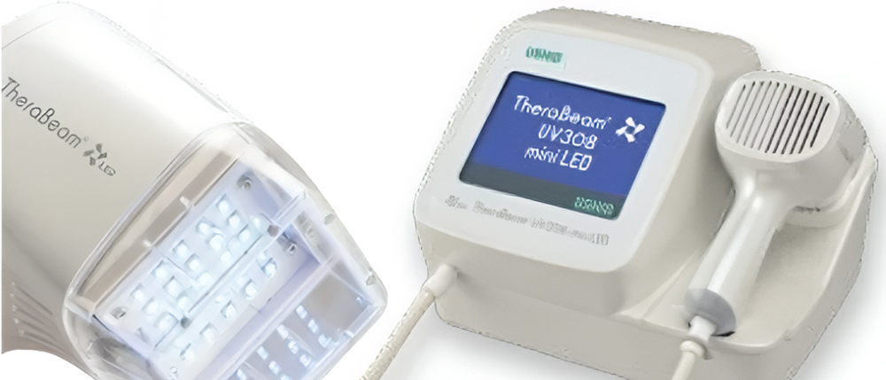 短波長の紫外線を患部に照射し、過剰反応している皮膚の炎症を沈静化させる治療です。従来よりも効果が高い波長を使用することで、肘や膝など治療が難しかった部位にも高い治療効果が期待できます。